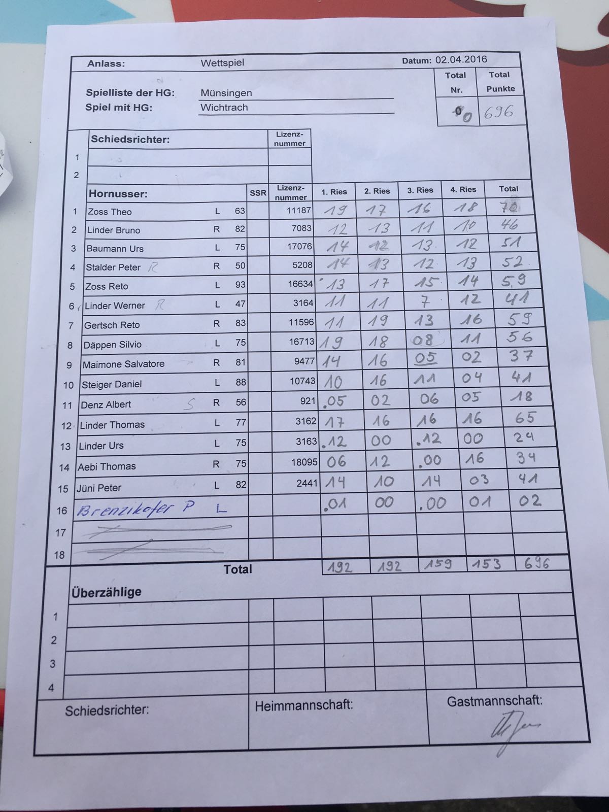 Mit 2 Nummer und 1605 Punkten dürfen wir nur einen Erinnerungspreis mit nachhause nehmen.