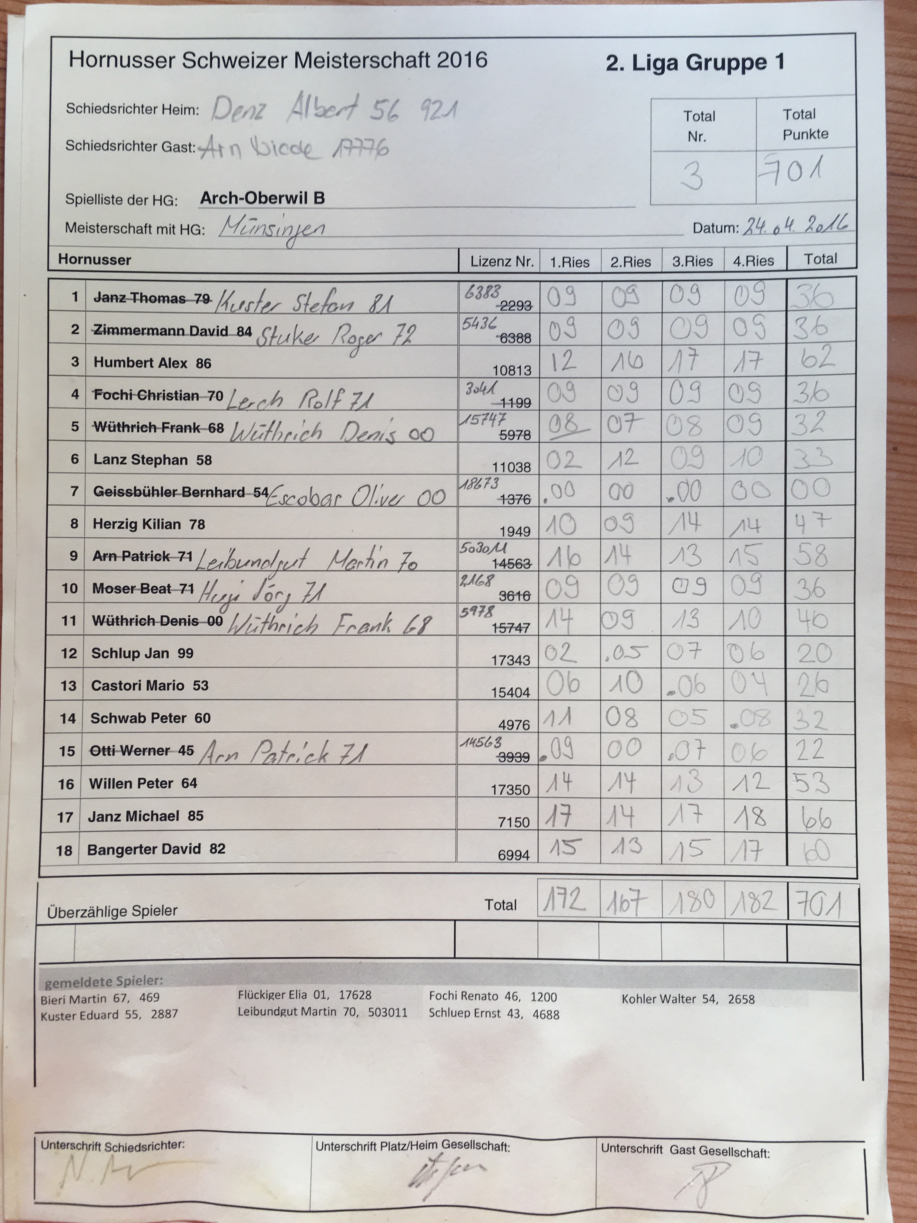 Trotz allem konnten wir heute gegen Arch-Oberwil 2 Punkte gewinnen.